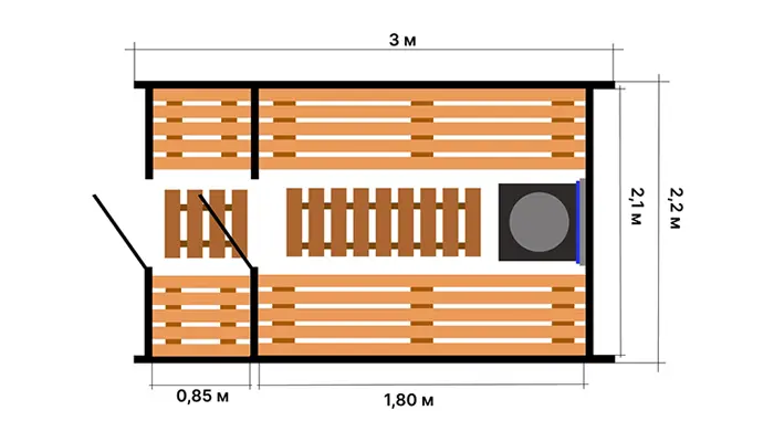 - Окно в парилке (стандартное 30х30 см — можно увеличить размер)